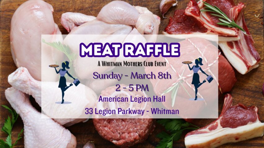 Time to take a chance to fill your freezer all while helping the Whitman Mothers Club raise some money for the community! OPEN TO THE PUBLIC! This is a cash only event – please be prepared. Raffle Ticket Pricing: $5.00 = 5 tickets $10.00 = 15 tickets Enter one raffle or enter them all –…
